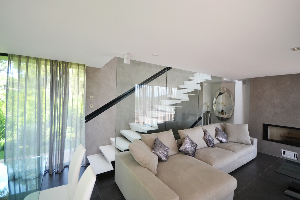 Laqué en blanc, cet escalier devient une oeuvre immaculée, offrant une toile de fond lumineuse et contemporaine à votre espace. Le garde-corps en verre autoportant ajoute une touche de transparence et de modernité, soulignant la beauté sculpturale de l’escalier tout en assurant la sécurité des utilisateurs.